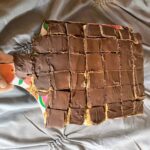 What followed was part sculpture, part salvage operation, and entirely educational. I pieced the slices back together like a chocolate-covered puzzle, smeared on a second coat with the determination of someone who refuses to admit defeat, and gave it my best “now pretend this was intentional” face.