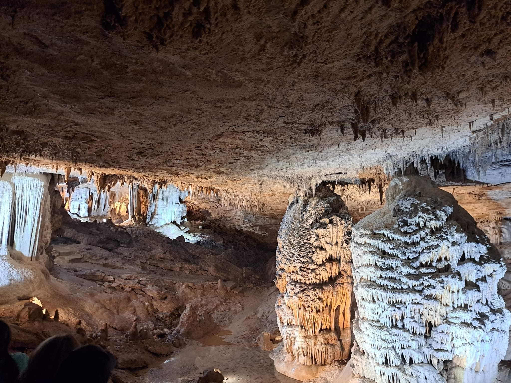 The experience itself? Strange in the best way. You climb aboard a tram and ride through the cave while your guide shares stories, points out formations, and navigates through spaces that feel impossibly narrow. Our guide was a wonderfully quirky woman who clearly adored her underground office. Her enthusiasm was infectious, even when she’d cheerfully announce, “You might want to duck here!”