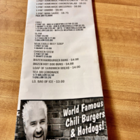 The Chili Burger is the DDD featured item and the obvious choice. If you’re a diner purist, the BLT and chicken sandwich are solid. We’d skip the chili on the side — just get the full experience.
