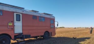 Heddy almost always comes back at dark, and will venture out again during the night for a little bit before requesting to come back in. Scabbers and Pebbles, they are night cats. Preferring to sleep in the bus all day and then go out and hunt bugs at night. Scabbers will come in and out throughout the night, but Pebbles always stays out all night. It’s her time!