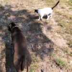 When we arrived at our stay for the night, Zach walked the dogs, which meant the cats also popped out!