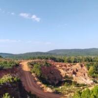 Ron Coleman Mine crystal digging site in Jessieville Arkansas with red clay and quartz crystals