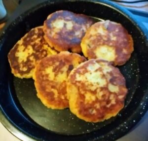 I had a moment of sheer frustration.. and then revamped the methods. Used a teflon pan, with butter, flattened the balls into more like a pancake and they were golden! A few minutes on each side and they were done! Perfect side for our turkey!