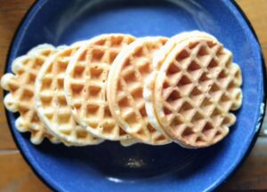We made “pancake” waffles first in it, mainly because I had dry ingredients for pancakes already made! All I needed to do was add the egg, milk and oil. But how much ? I went with what I normally do for pancakes and the results were FLUFFFFFFFY ! But yummy! Like a crispy waffle edged pancake, maybe?