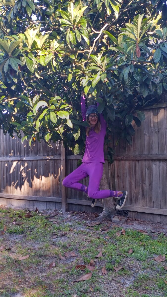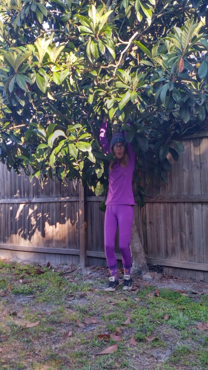 I decided to try to hang from a kumquat tree. Because why wouldn’t I hang from a kumquat tree to see how flexible these leggings really are? They passed. I could move, stretch, and climb without worrying about them giving up on me.